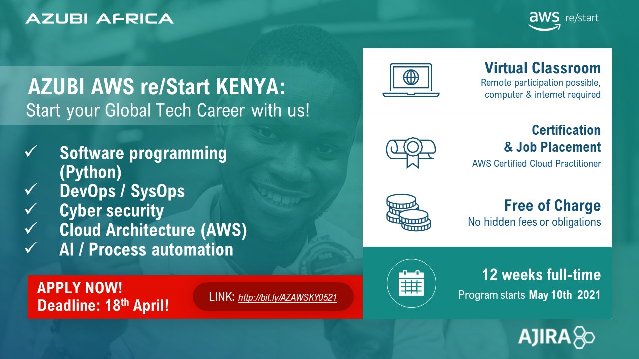 Getinnotized On Twitter Applications Are Still Open For Azubi Aws Re Start Kenya If You From Or Live In Kenya Here S A Fine Opportunity To Equip Yourself With The Tech Skills For Free